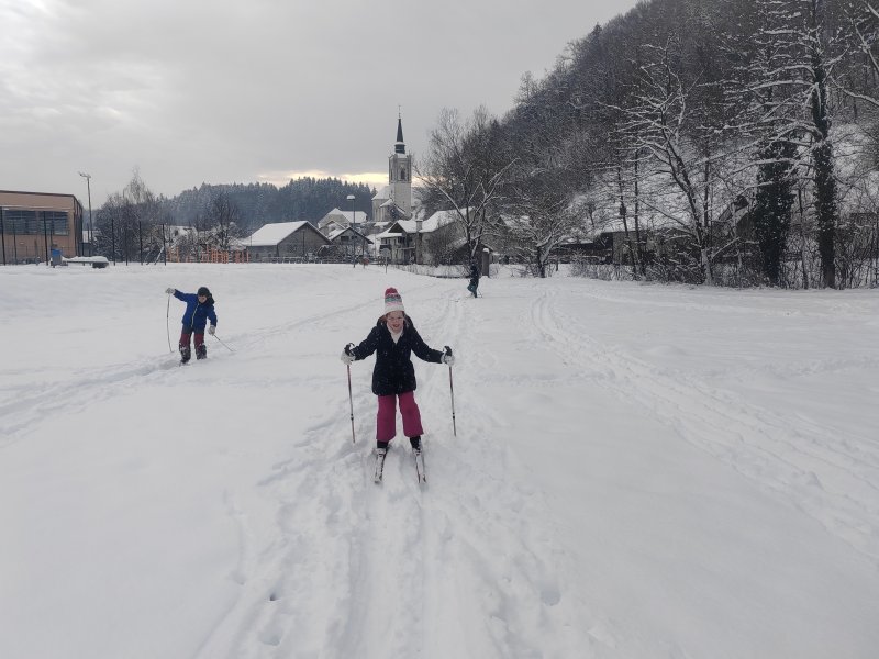 Zima nas je letos bogato obdarila, kar v oddelkih OŠPP s pridom izkoriščamo že cel teden. Nekateri oddelki so na dnevih dejavnostih uživali na sankanju, učenci 2. in 3. razreda NIS pa so ure športa izkoristili za seznanitev in urjenje tehnike teka na smučeh. Vsi so uživali in vsak po svojih sposobnostih premagovali razdaljo urejene proge v okolici šole.
