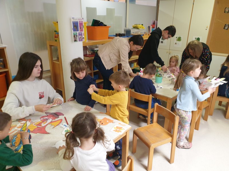 V okviru projekta Medgeneracijsko branje smo se v mesecu novembru 2025 učenci NIS programa 7. in 8. razreda OŠPP Mirna družili z otroki skupine GUMBI vrtca Deteljica Mirna in učenci 1. a ter 1. b razreda OŠ Mirna. Prebrali smo jim slikanico POGOLTNI ZMAJ, ki jo je napisal Jure Preglau, ilustrirala pa Katerina Kalc.