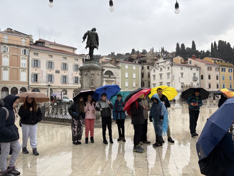 V ponedeljek nas je cel dan spremljalo sonce, danes pa smo izkusili tudi nekaj dežja in vetra. Kljub vremenu smo si ogledali Piran in se naučili nekaj o zgodovini mesta. Popoldne se bomo seznanili o osnovah ribištva in jezerih v Fiesi.
