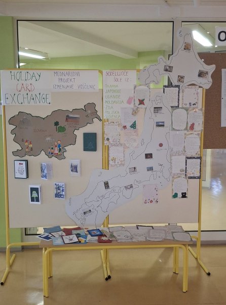 Tudi v letošnjem šolskem letu smo sodelovali v mednarodnem projektu Holiday Card Exchange. Sodelovali smo s partnerskimi šolami iz Moldavije, Združenih držav Amerike, Tajvana, Japonske, Ugande, Poljske in šolo iz Majšperka v Sloveniji.