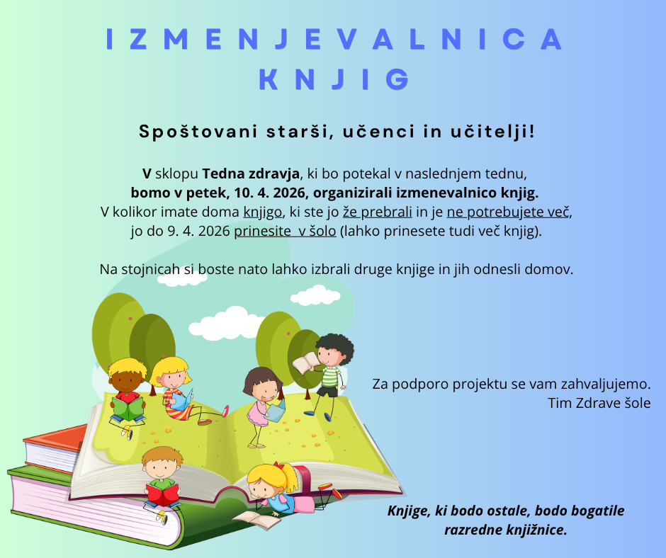 Skozi teden se bodo zvrstile različne dejavnosti, natečaji in akcije. Ena izmed njih je tudi IZMENJEVALNICA KNJIG.