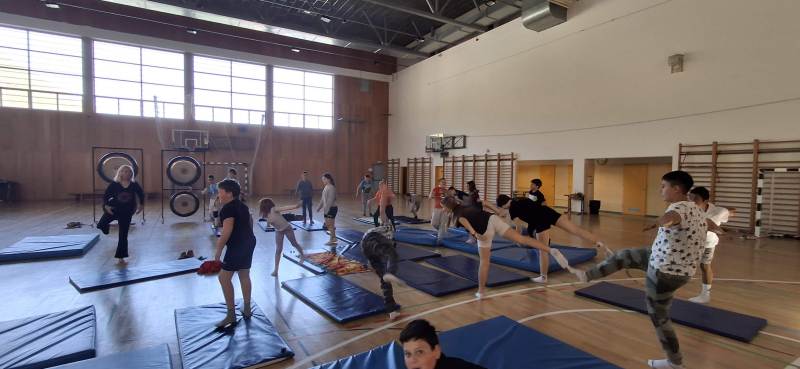 Učenci OŠPP in 8. razreda rednih oddelkov so tretjo šolsko uro preživeli v telovadnici, kjer je gospa Helena Vlaj igrala na gonge. Mogočni in zelo sproščujoči zvoki, donenje in prijetno vzdušje so sprostili naše telo in duha.