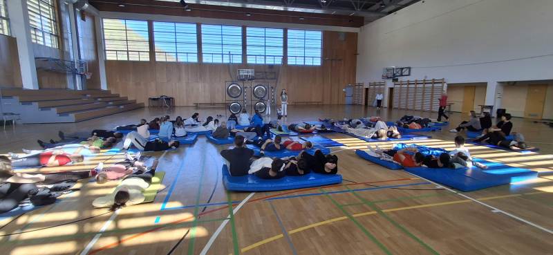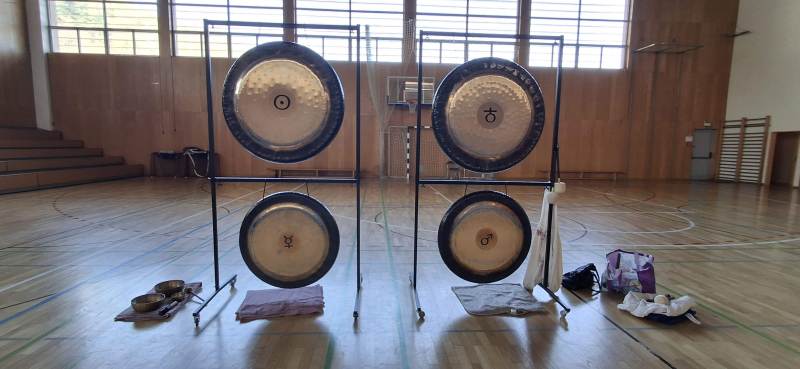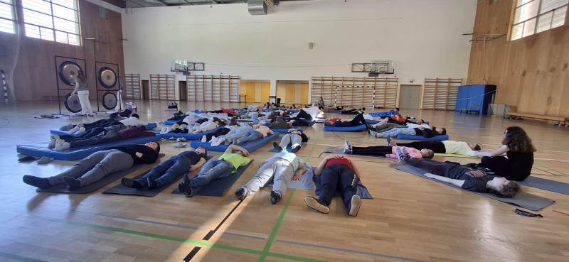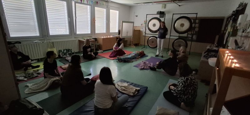 Na svoj račun pa smo prišli tudi zaposleni. Po koncu pouka nas je gospa Helena razvajala z zvoki štirih mogočnih gongov in prijetnimi zvoki tibetanskih posod. Prav prilegala se je taka sprostitrev. Priporočamo vsem, da raziščejo ta svet zvočnega sproščanja.