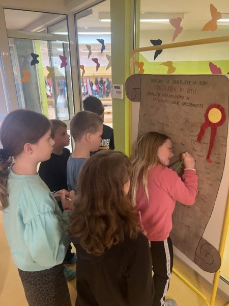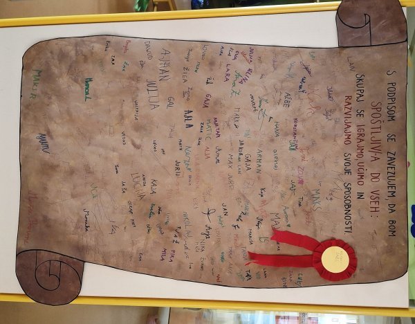 Prav tako smo se učenci in zaposleni s svojim podpisom na listini zavezali, da bomo spoštljivi en do drugega.