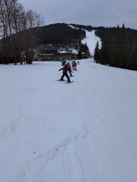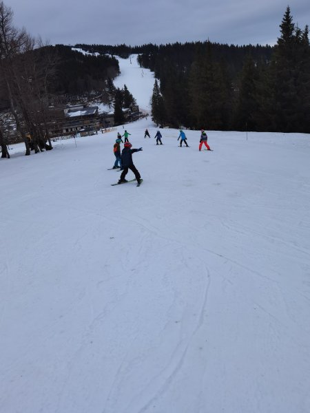 Zjutraj smo se zbudili, oblekli in odšli na zajtrk. Ko smo se najedli, smo se oblekli v smučarsko opremo in odšli smučat. Danes nam je šlo smučanje že zelo dobro. Med smučanjem smo imeli obilno kosilo, nato pa smo nadaljevali na malo bolj zahtevnih smučarskih stezah. Ko smo zaključili s smučanjem, smo se preoblekli, pospravili smučarsko opremo in odšli na malico.