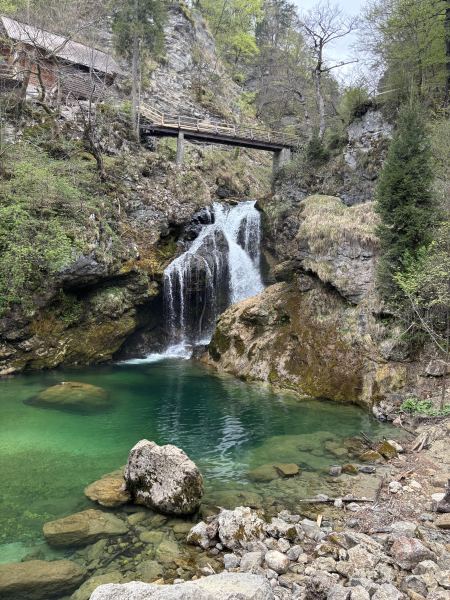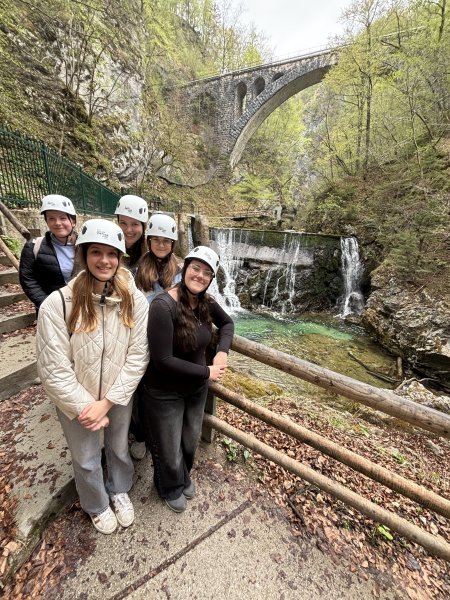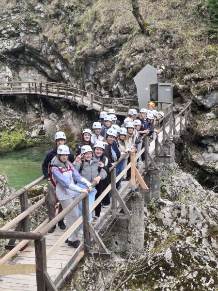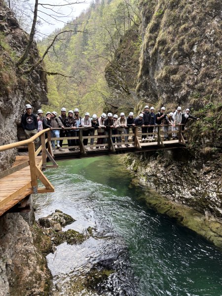 V torek, 14. 4. 2026, smo se učenci 8. razreda odpravili na ekskurzijo po Gorenjski. Prva postaja je bila srednjeveška Škofja Loka. Spoznavali smo zbirke muzeja na Loškem gradu in bogato zgodovino tega območja. V Škoparjevi hiši iz 16. stoletja smo videli črno kuhinjo, prostor za druženje (hišo) in spalnico (kamro). Zatem smo se sprehodili skozi mestno jedro mimo starega rotovža, Marijinega znamenja in Homanovega dvorca iz 15. stoletja, kjer je danes znana kavarna in slaščičarna. Sledila je pot v Kropo, ki je bila kot prvi kraj na Slovenskem razglašena za kulturni spomenik. Ogledali smo si Kovaški muzej. Šli smo tudi v vigenjc in se preizkusili v kovanju žebljev. Ljudje so vsak dan ob pol petih zjutraj začeli z delom, delali cel dan in si vzeli čas samo za obed. Vsak dan so morali narediti 2000 žebljev. Pokrajina leži ob vznožju planote Jelovica. Ker Kropa leži v ozki dolini potoka Kroparice, vanjo v zimskih mesecih sonce skoraj ne posije. Dan smo zaključili s sprehodom po čudoviti Soteski Vintgar, ki jo je izoblikovala gorska reka Radovna. Videli smo tudi slap Šum, ki je visok 15 metrov. Ta dan smo se sprehodili skozi slovensko zgodovino in občudovali gorenjsko pokrajino.